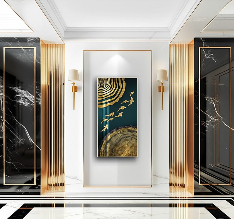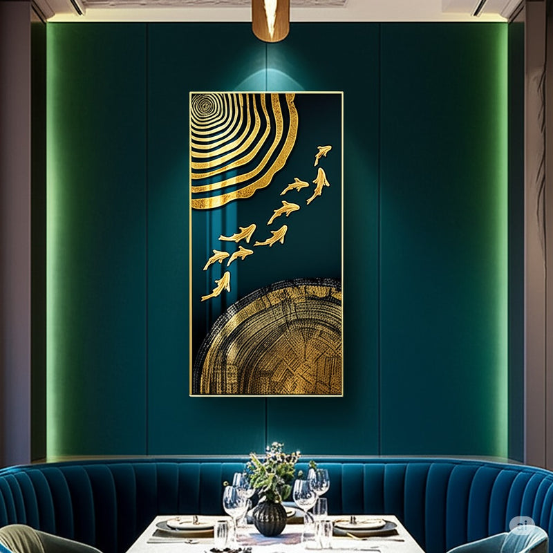 Vendor:HatteeElegant Teal & Gold Textured Wall Art