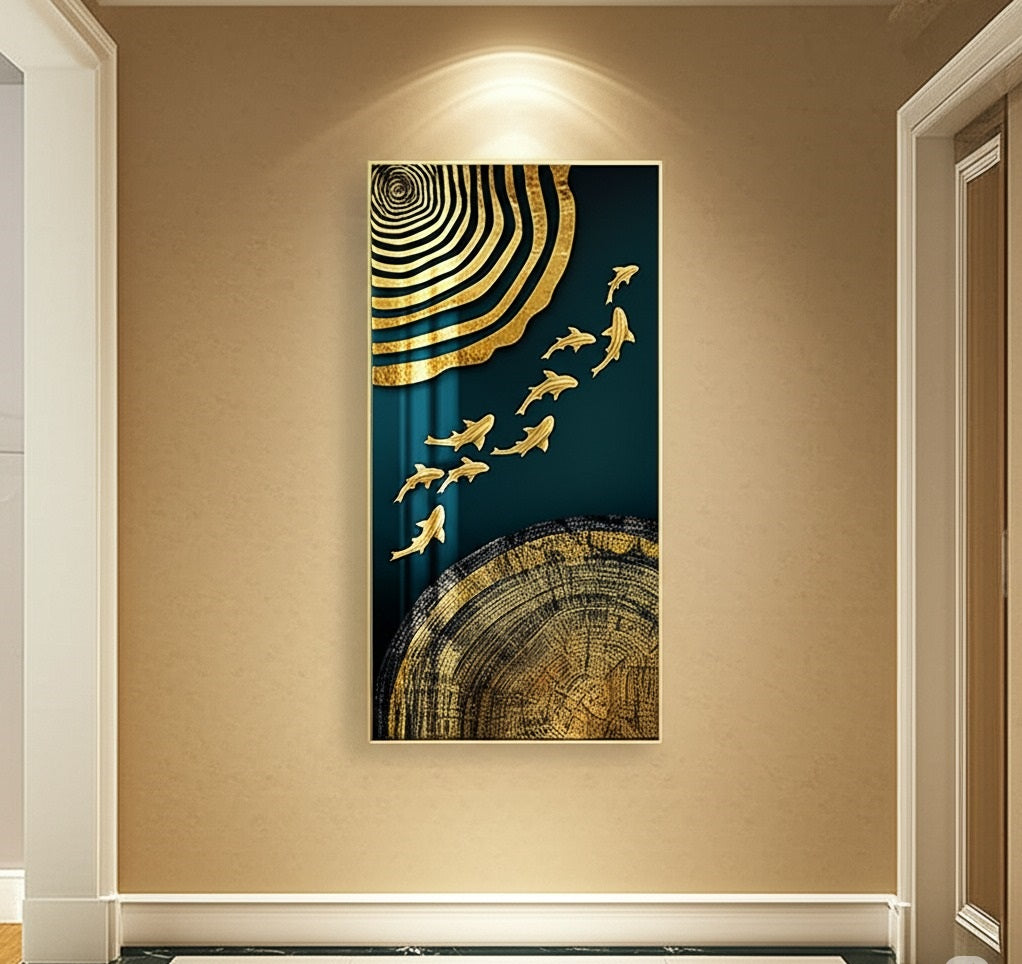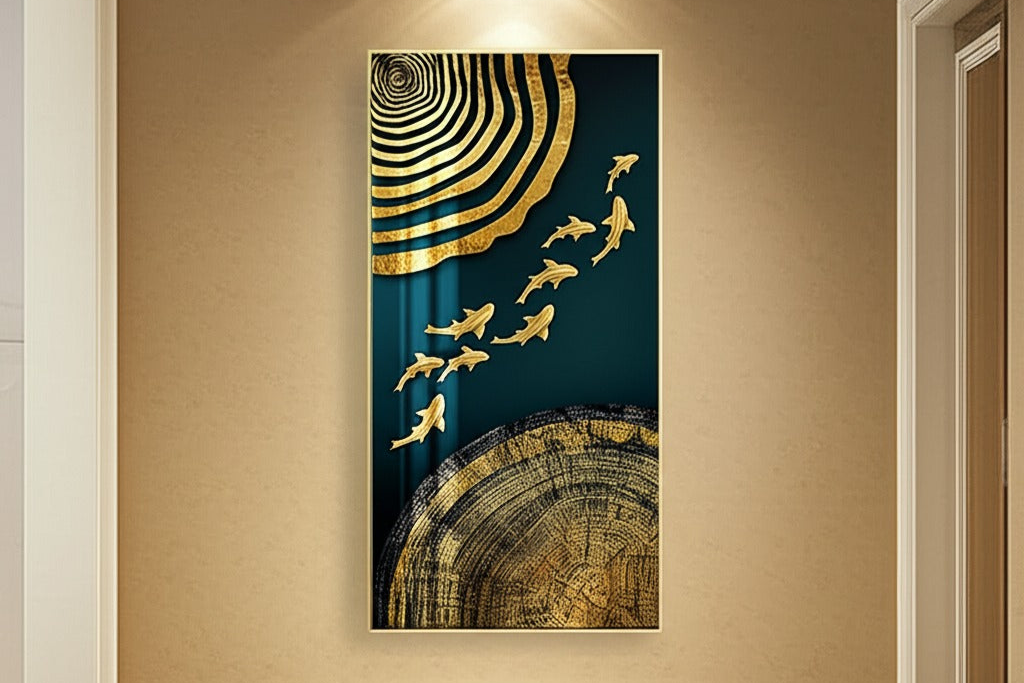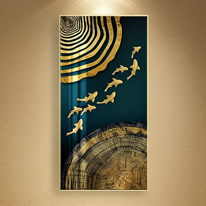 Experience the quiet power of the ocean with this handcrafted resin diptych featuring flowing wave patterns and golden fish.