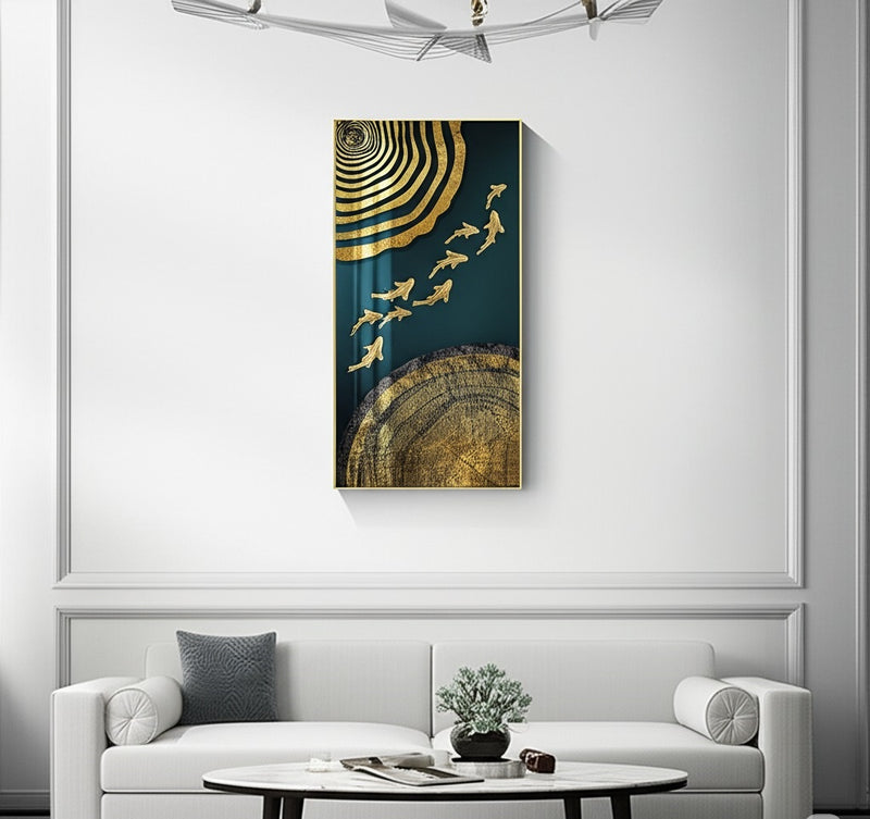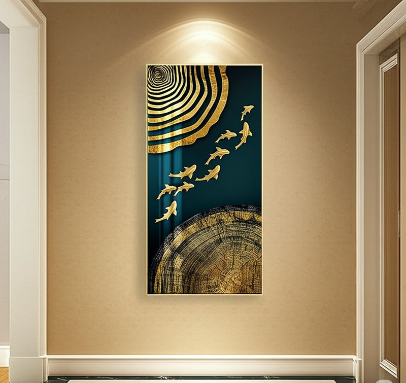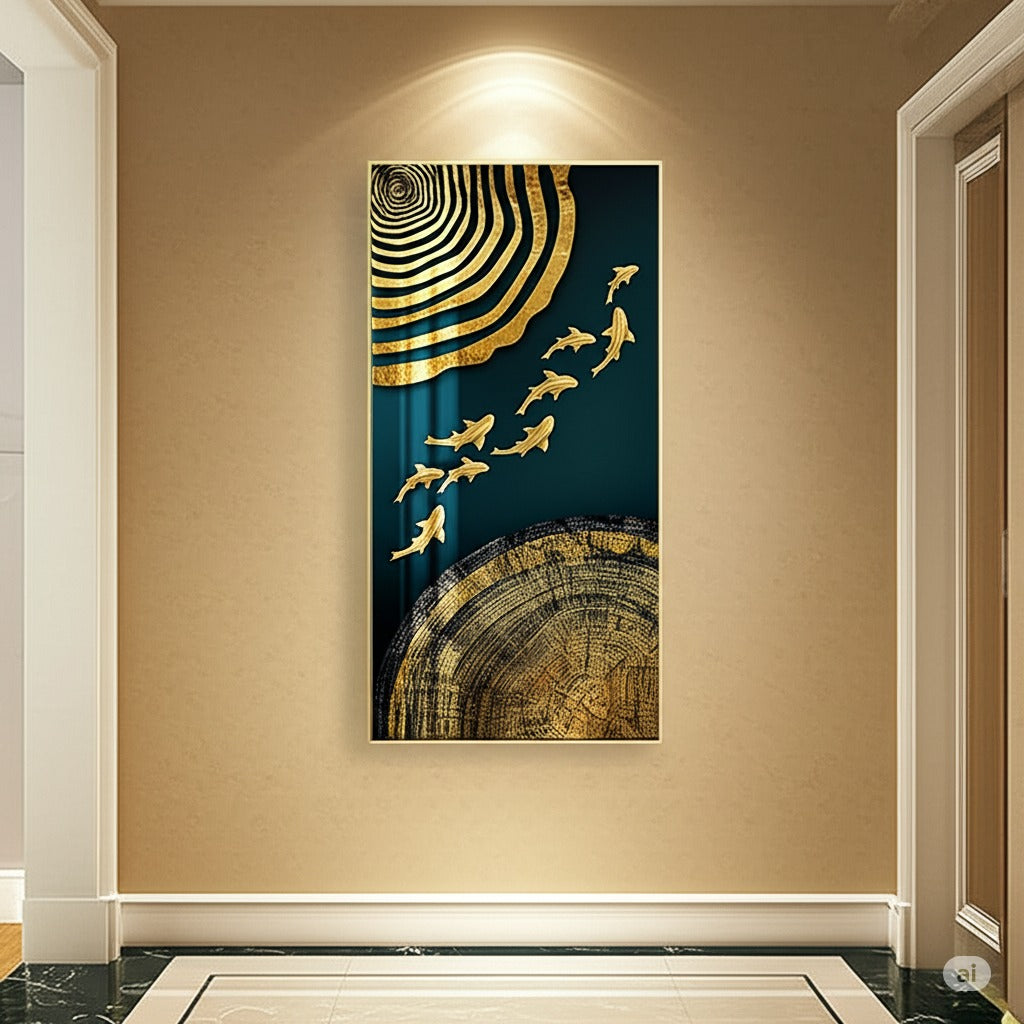 Experience the quiet power of the ocean with this handcrafted resin diptych featuring flowing wave patterns and golden fish.